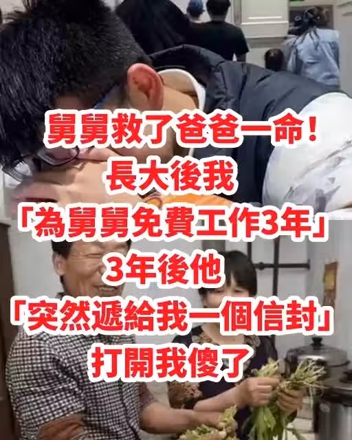 舅舅救了爸爸一命!長大後我「為舅舅免費工作3年」 3年後他「突然遞給我一個信封」打開後我傻了