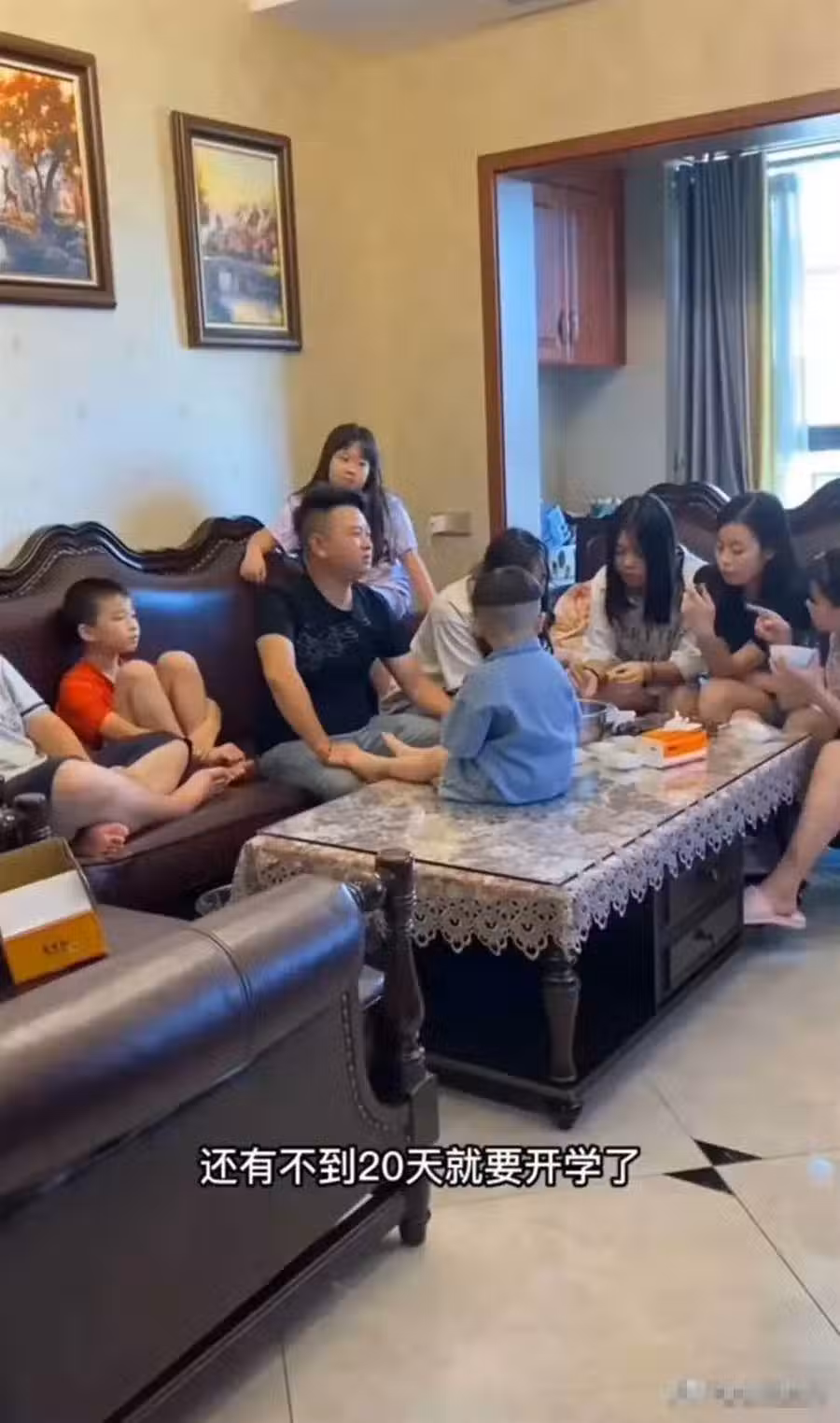 據悉,男子有3個姐姐,1個妹妹,共16個外甥。加上自己的2個孩子,也就是說到了寒暑假,家裡會有18個孩子。