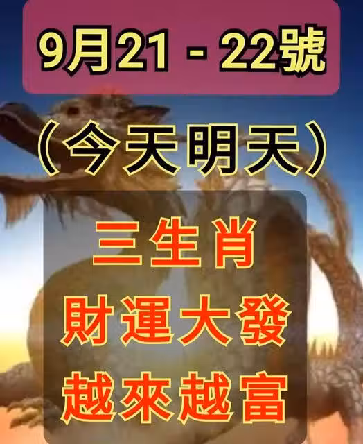 9月21 - 22號(今天明天) 三生肖 「 財運大發 」 「 越來越富」!