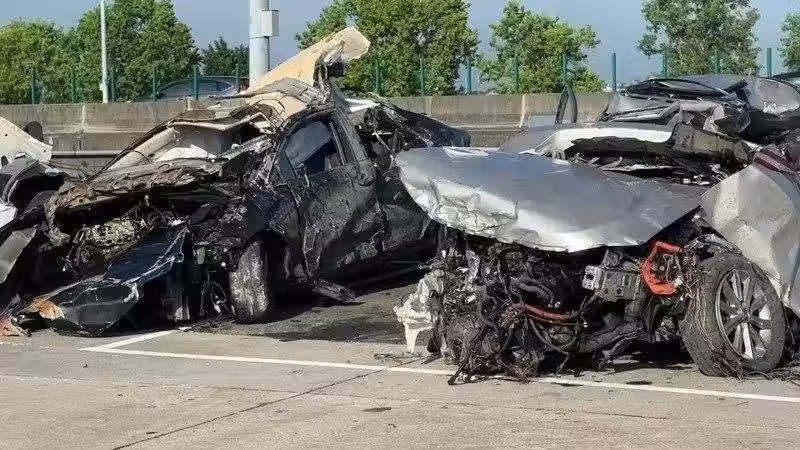 曾女是開銀色車被後面的黑色車追撞,兩車翻覆稀爛,造成三死一傷。