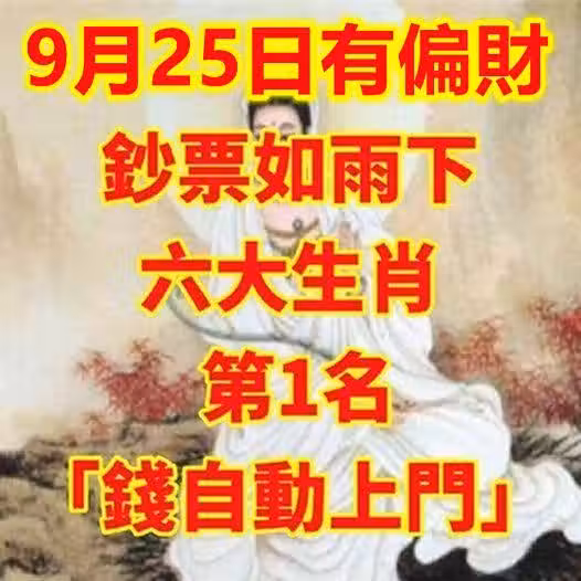 9月25日有偏財,鈔票如雨下的生肖! 第1名「錢自動上門」
