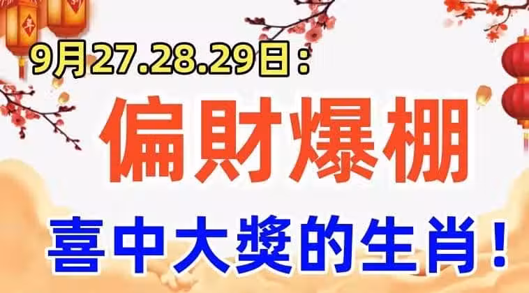 9月27.28.29日:偏財大爆棚,喜中大獎的生肖!