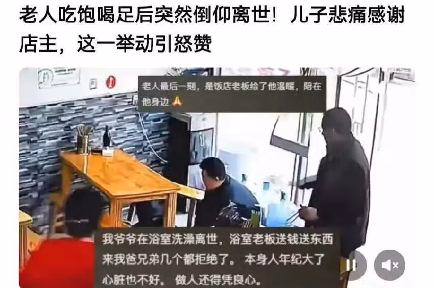 雖然結果令人悲傷,但麵館店主的善舉,為老人的人生畫上了溫暖的句號。