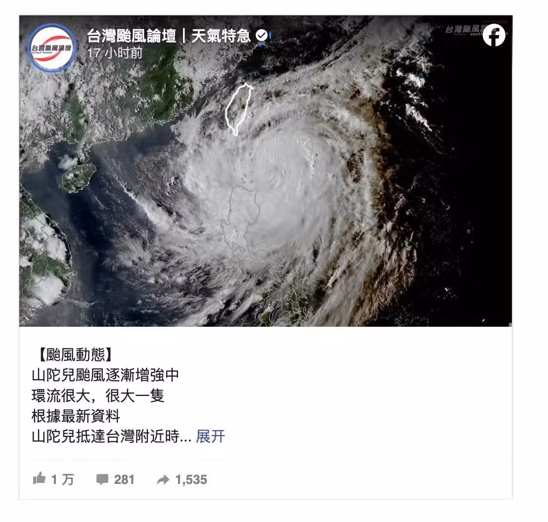 貼文來源:台灣颱風論壇|天氣特急 臉書