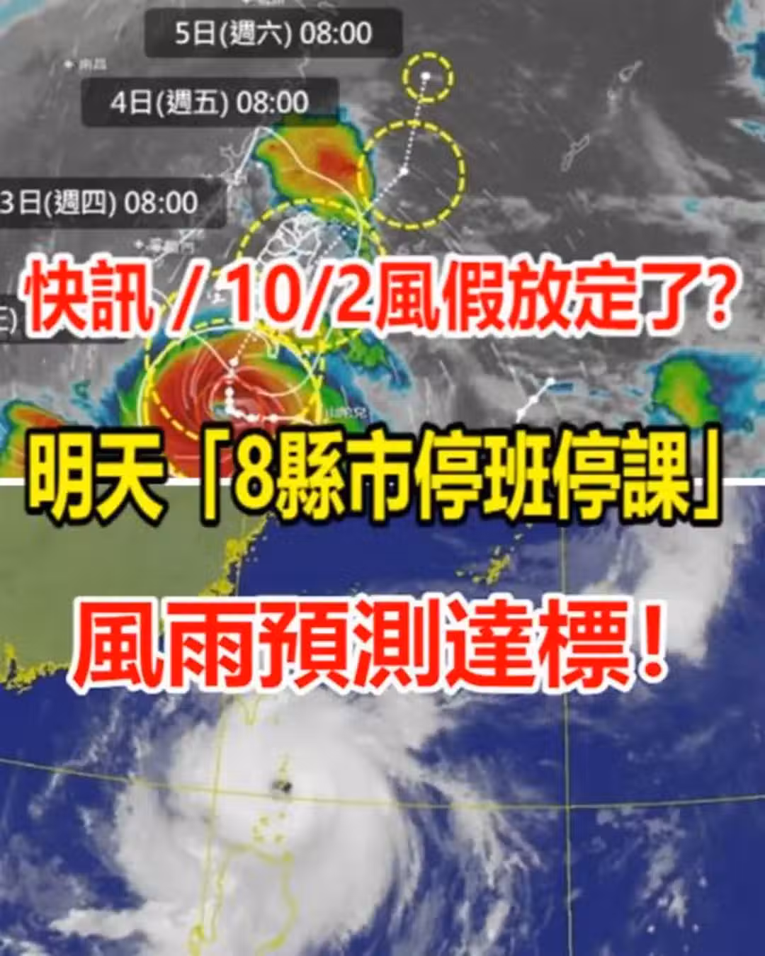 快訊/10/2颱風假放定了?明天「8縣市停班停課」風雨預測達標!
