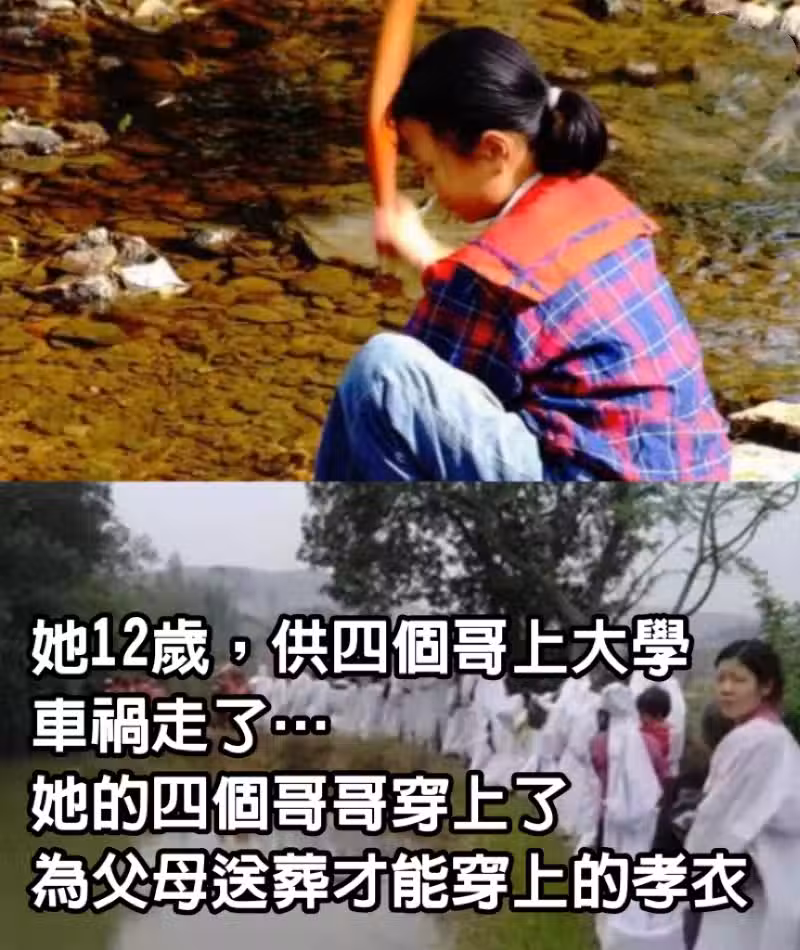 她12歲,供四個哥上大學,車禍走了…她的四個哥哥穿上了,為父母送葬才能穿上的孝衣。