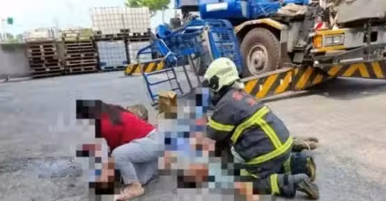 當時吊車準備要將4名工人送上去,執行高空弔掛作業,沒想到吊臂突然斷裂,在吊車上的4名工人被重摔,傷勢嚴重。警消獲報後趕緊沖往現場,立刻將傷者送往醫院搶救;
