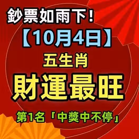 鈔票如雨下!【10月4日】五生肖財運最旺,第1名「 中獎中不停 」