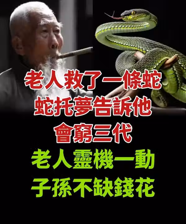 老人救了一條蛇,蛇託夢告訴他會窮三代,老人靈機一動,子孫不缺錢花