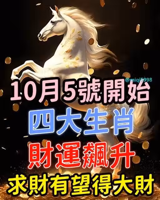 嘿,朋友們,準備好迎接一波財富的狂潮了嗎?10月5號開始,可不是個平凡的日子,對於某些生肖來說,簡直就是幸運女神親自敲門,財神爺保駕護航,讓你的錢包鼓得不像話,前程亮得讓人眼饞!今天,我們就來揭秘這四位被財神爺格外垂青的幸運兒,看看他們是如何在生活的牌桌上,一把翻盤,贏得盆滿缽滿的!