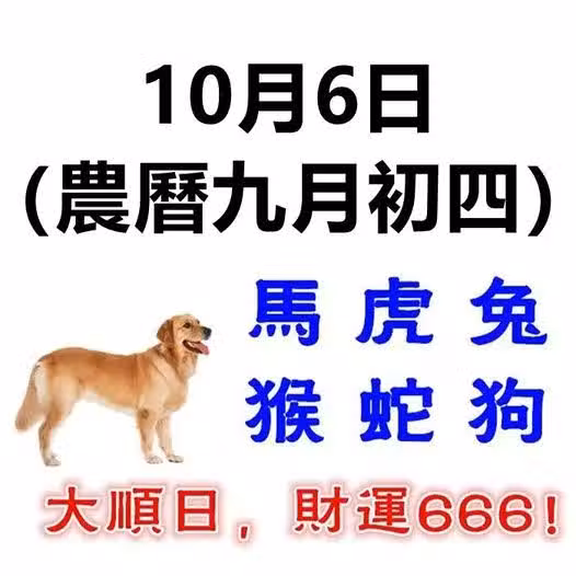 小運播報:2024年10月6日,星期日,農曆九月初四,法定工作日。