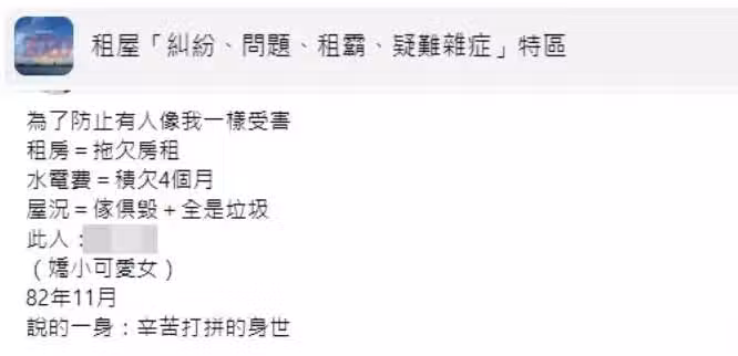 根據報道,這位房東在臉書社團「爆料公社」以及「租屋『糾紛、問題、租霸、疑難雜症』特區」中發文,希望通過自己的經歷提醒更多房東。她在回憶初見這位1993年出生、外表嬌小可愛的詹姓女子時,心中充滿了善意。詹小姐表示自己獨自北上打拚,讓房東不忍心拒絕,甚至降租租金將套房租給她。誰能想到,這竟是一場惡夢的開始。