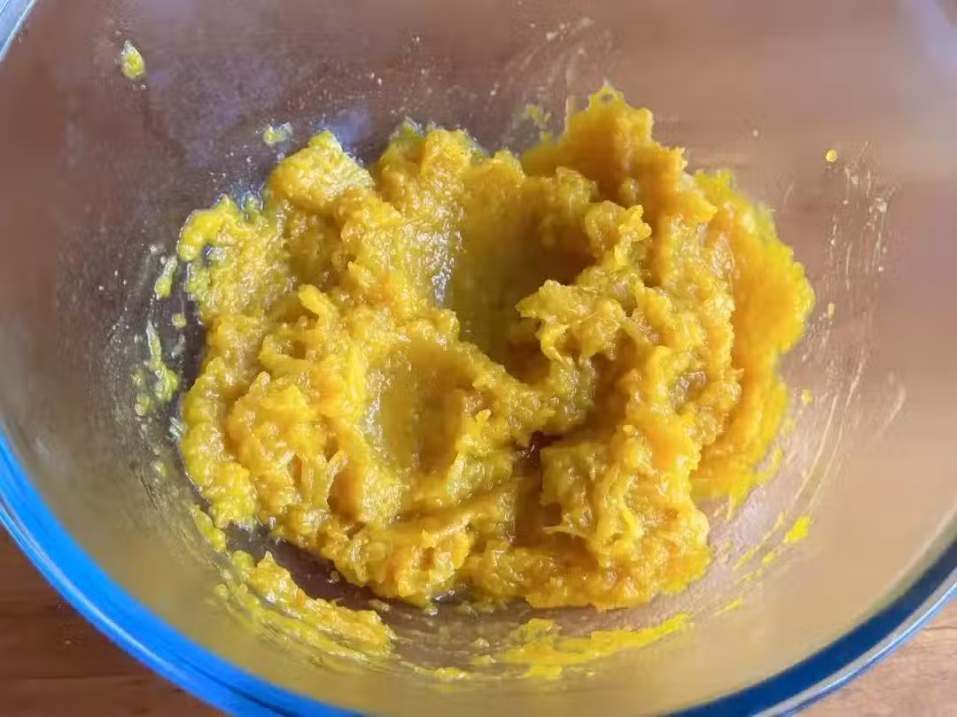 2、趁熱加入糯米粉揉成不沾手的麵糰。