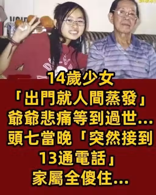 14歲少女「出門就人間蒸發」爺爺悲痛等到過世...頭七當晚「突然接到13通電話」家屬全傻住~