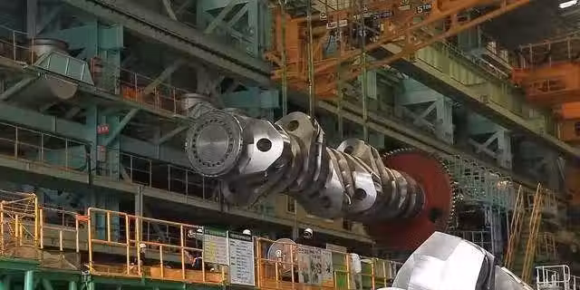 不管是齒輪還是曲軸,世界最大柴油機的各個零部件,單拎出來哪個都能超過成年人的體型,必須有龍門吊的幫助才能完成組裝;