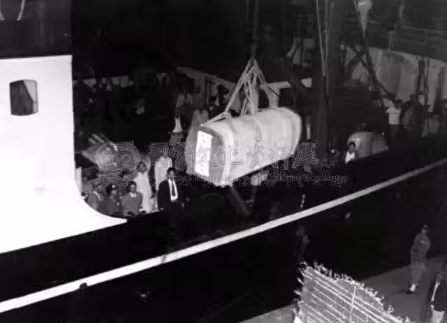 1952年10月,當杜月笙的靈柩被緩緩運送到台北的碼頭時,留下了這一張老照片,照片中杜月笙的楠木棺材顯得格外厚重,上面綁著粗糙的麻繩,仿佛在訴說著這位一代梟雄的傳奇人生。工人們緊張而忙碌,他們齊心協力,正準備將這位曾經在上海灘叱吒風雲的青幫大佬的棺材運上岸。