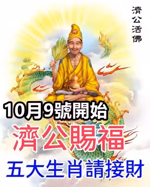 10月9號開始濟公賜福,五大生肖請接財
