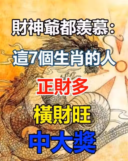 財神爺都羨慕:這7個生肖的人,正財多,橫財最旺,中大獎