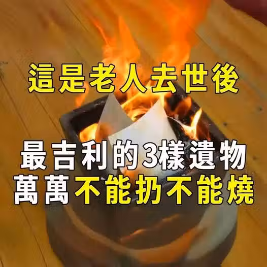 老人去世後!最吉利的「3件遺物」最好別丟 「留下來是福氣」保子孫後代富貴平安 老人去世後,這3件遺物不要丟棄,能夠給後人帶來福氣,建議看看 老年人離開人世,作為子女,務必要做好老人的身後事,讓老人能夠走的更加安心,讓老人能夠安息。 老人去世後會留下很多遺物,除了財產以外,還會有生活中經常使用到的東西,大多數人都會將老人的遺物全部燒掉,實際上有3樣東西最好不要燒掉,留下來能夠給後人帶來福氣,想要了解具體內容的朋友,可以跟著文章一起往下看。