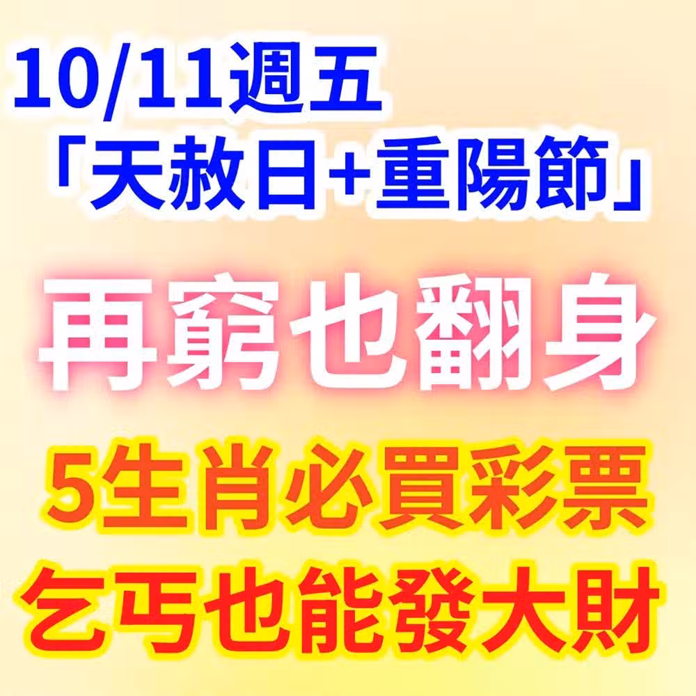 10/11周五「天赦日+重陽節」這5個生肖必買彩票,乞丐也能發大財,尤其這個屬相!再窮也能翻身!