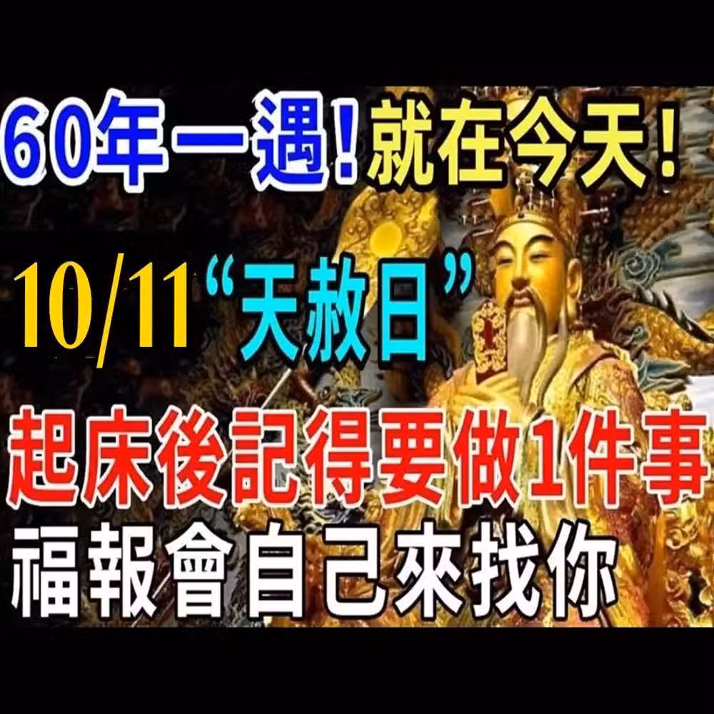 60年一遇!10月11號「天赦日」,起床後記得要做一件事,福報會自己來找你!讓你旺到年尾!