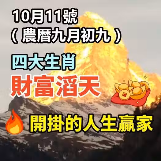 10月11號(農暦九月初九)四大生肖財富滔天,開掛的人生贏家