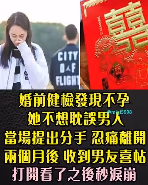 婚前健檢發現不孕!她不想耽誤「當場提出分手」忍痛離開 兩個月後「收到男友喜帖」打開看秒淚崩