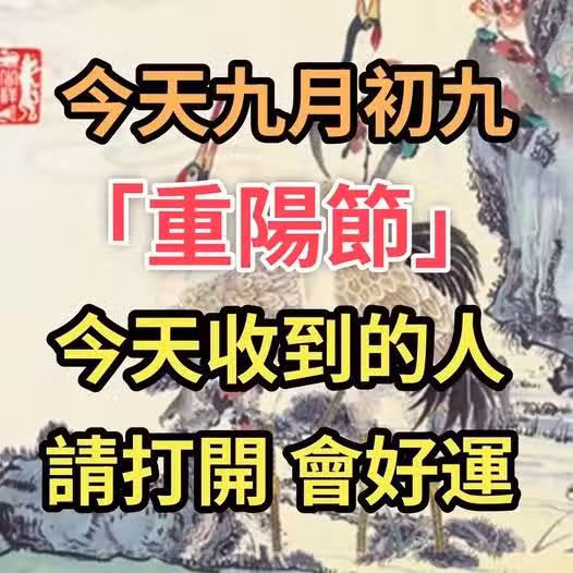 今天九月初九!「重陽節」今天收到的人請打開!會帶好運