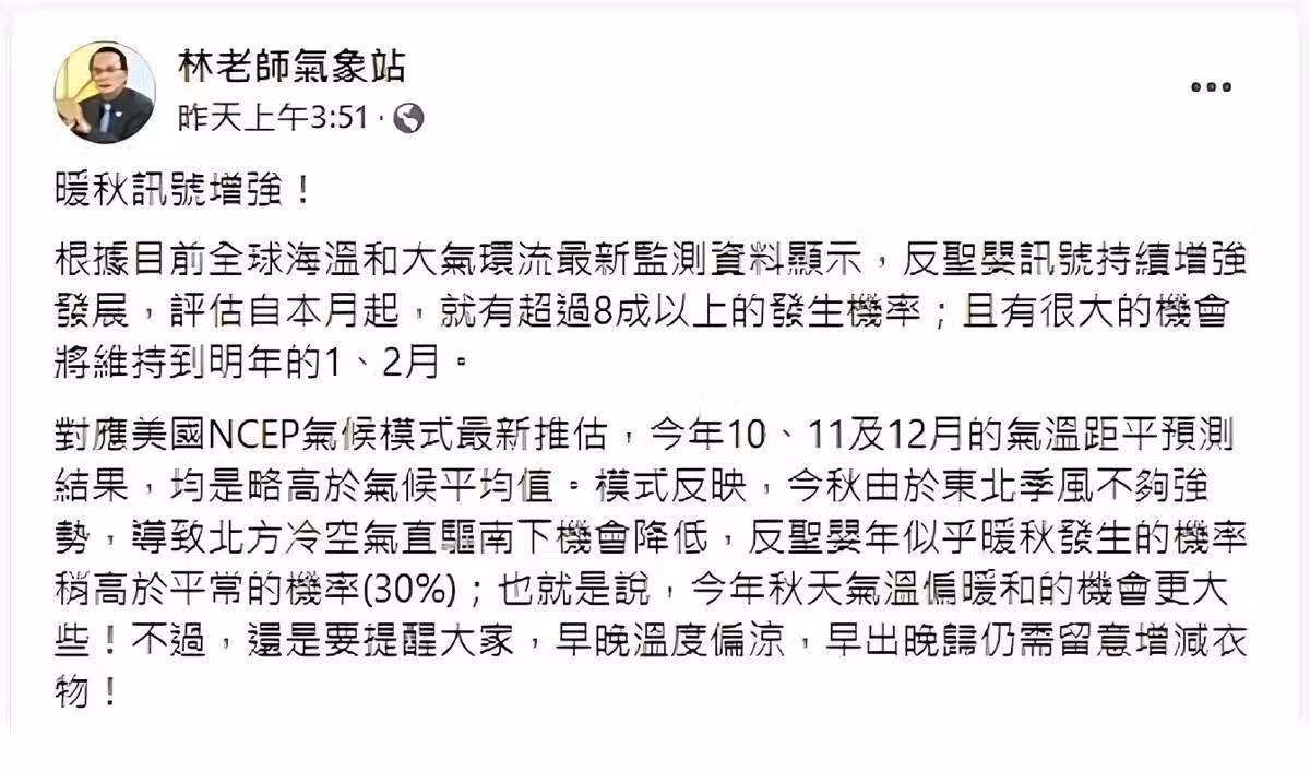 冬天不來了?「暖秋訊號增強」氣象專家:恐維持到明年2月