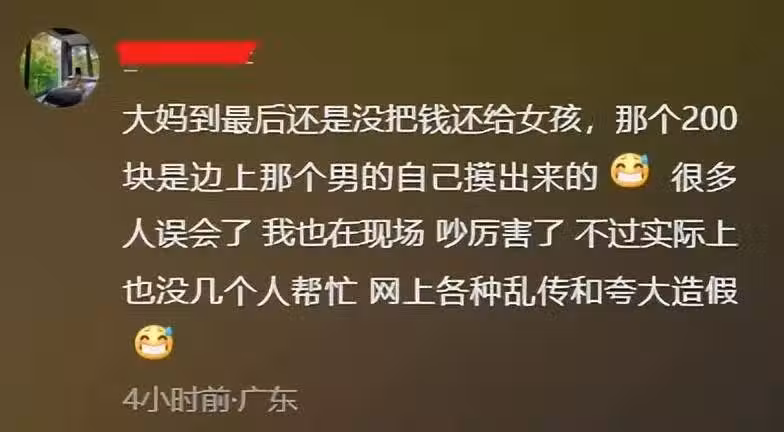 然而,也有人表示不解:區區200元(約台幣880元)而已,女學生何至於如此激動?知情人透露,這位女學生的父母都不在身邊,她是跟著年邁的爺爺奶奶生活,家庭經濟狀況十分拮据,這200元對她來說可能是長時間的生活費,是她幾乎不敢丟失的血汗錢。因此,為了這筆錢,她才會在眾人面前放下尊嚴,哭喊下跪。