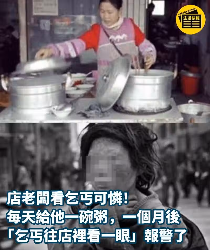 店老闆看乞丐可憐!每天給他一碗粥,一個月後「乞丐往店裡看一眼」報警了老闆哭著感謝他