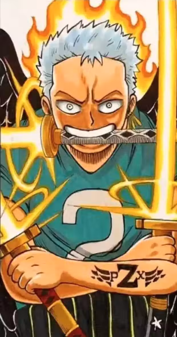形象還是小孩子,而手臂上有明顯的PX二字,更有趣的是他的三把刀居然可以釋放雷射鐳射,這是不打算給他吃人造惡魔果實,而是利用鐳射刀來迎戰敵人嗎?但如果可以搭配消除路痴的症狀,或許會有利於熾天使索隆在戰鬥的行動。