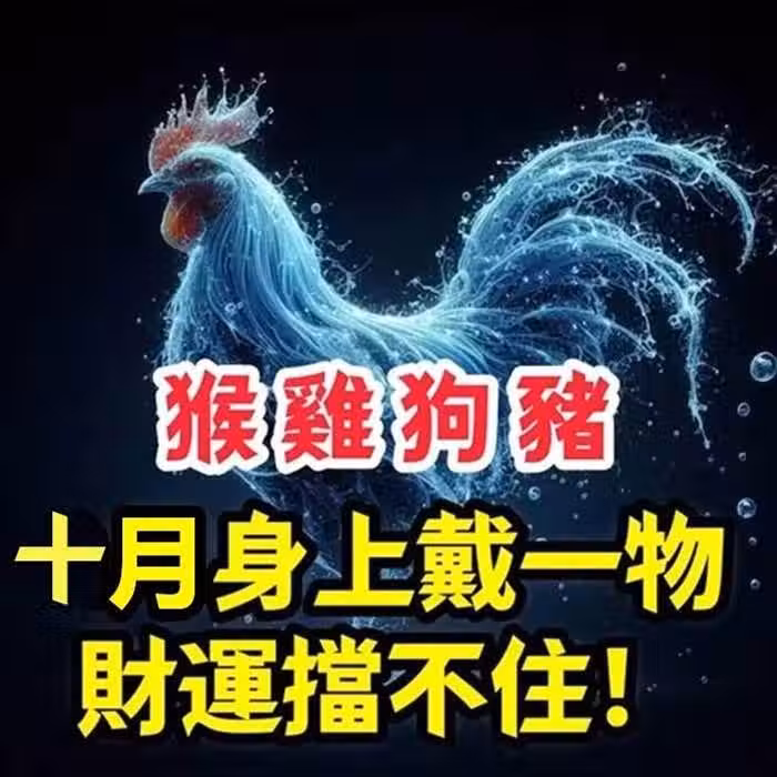 生肖「屬猴、屬雞、屬狗、屬豬人」10月身上戴一物,財運擋不住 !