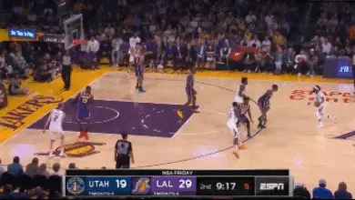 雖然速度不快,但康利的突破還是有效殺到了湖人籃下。面對霍華德,康利最終選擇了拋投但還是難逃前者的大帽。