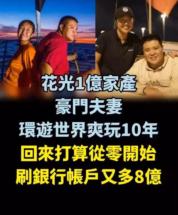 花光1億家產!豪門夫妻「環遊世界爽玩10年」差點回不來 打算從零開始「刷銀行帳戶笑了」:又多8億