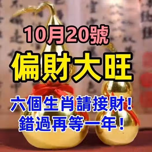 10月20號偏財大旺,六個生肖請接財!錯過再等一年!