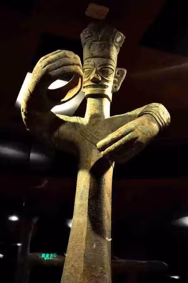 在三星堆出土的各種文物中,最讓人感到詫異的是這些青銅面具。它有著一雙大耳朵,兩隻眼睛也是異常的突出,並且臉上帶著微笑,如此奇特的造型風格前所未見。據史料記載,「有蜀侯蠶叢,其目縱,始稱王」,由此可見眼睛越突出,地位越高。說到這裡其實最讓人不解的是,從三星堆里沒有挖出任何文字資料,所有有關古蜀文明的記載都來自外人的描述。