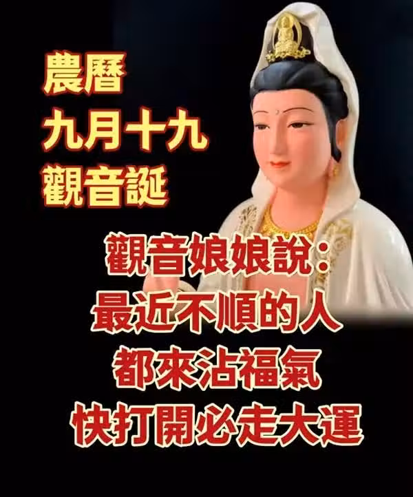 農曆九月十九(觀音誕)觀音娘娘說:最近不順的人都來沾福氣,快打開必走大運