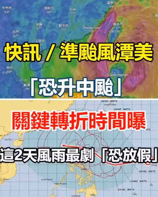 快訊/准颱風潭美「恐升中台」!關鍵轉折時間曝,這2天風雨最劇「恐放假」