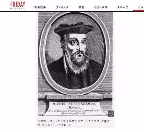 此外,400年前曾寫書《諸世紀》預言的16世紀法國星象大師諾查丹瑪斯(Nostradamus),更在書里不約而同提到,明年歐洲會為土地爆發戰爭,演變成無政府狀態的亂象,更可能於明年同步出現「古老瘟疫」,歐洲將成全球混亂中心。事實上,該書曾多次預言命中,例如法王亨利二世之死、法國大革命、希特勒崛起、美國前總統甘迺迪遇刺身亡、倫敦大火等,命中機率極高,讓人不得不提高警覺。