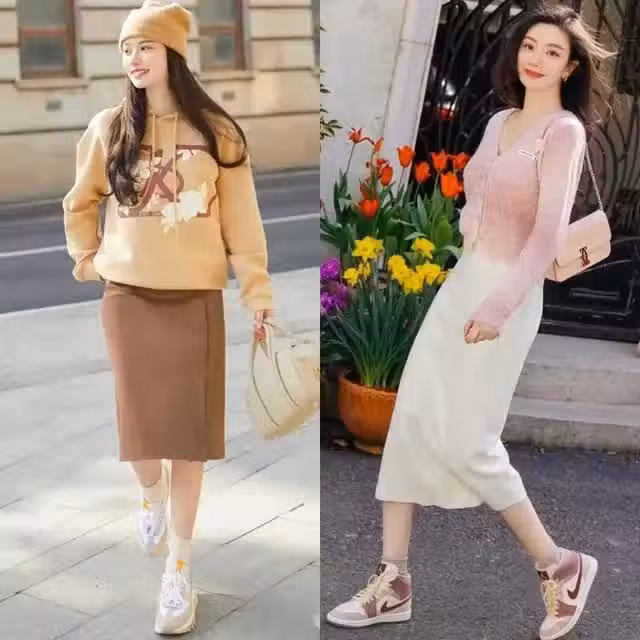 對於腿粗胯寬的梨形身材來說,a字裙和老爹鞋的搭配才是最佳首選。A字裙的裙擺外擴有著極強的包容性,搭配老爹鞋既顯瘦還很洋氣。如果想讓你的春夏季節穿搭看起來更加溫柔,那就可以嘗試輕紗材質的a字裙搭配老爹鞋,增添靈動感。