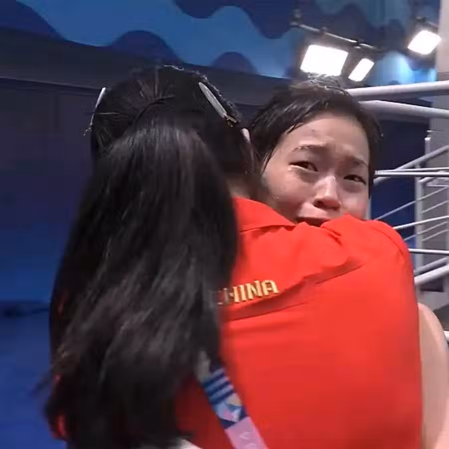 全紅嬋「蟬聯10米台冠軍」後,與教練陳若琳相擁「失聲痛哭」,網友:14歲沒哭,為什麼17歲哭了?