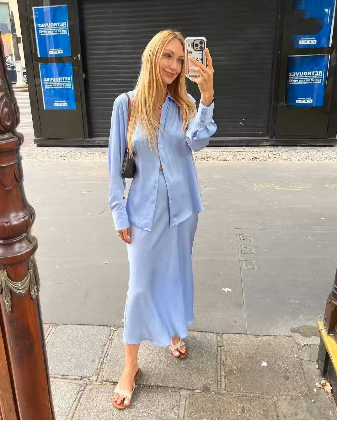 別再穿衛衣配牛仔褲了,「襯衣+半裙」才是真時髦cp,早穿早好看