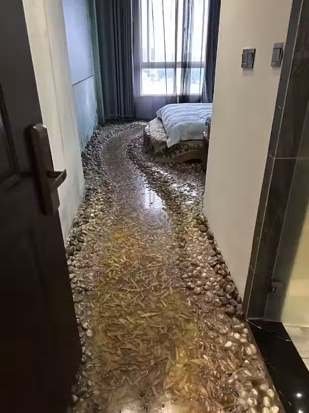 網友紛紛笑翻表示:「以為是廁所堵了下水道屎流出來了」、「充滿臭水溝子的房間…」、「我動森的房間就長這樣」、「主要感覺不是山清水秀,而是髒兮兮」、「關鍵是這坑坑窪窪的,打掃得乾淨嗎?」、「不用打掃,反正掃不掃效果都一樣」、「哥們 這純臭水溝啊」、「看了想分手」、「你這個睡覺就感覺像上墳一樣」