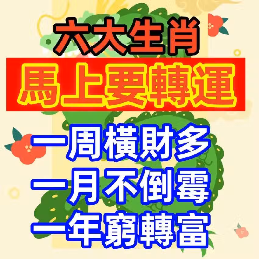馬上要轉運的六大生肖:一周橫財多,一月不倒霉,一年窮轉富