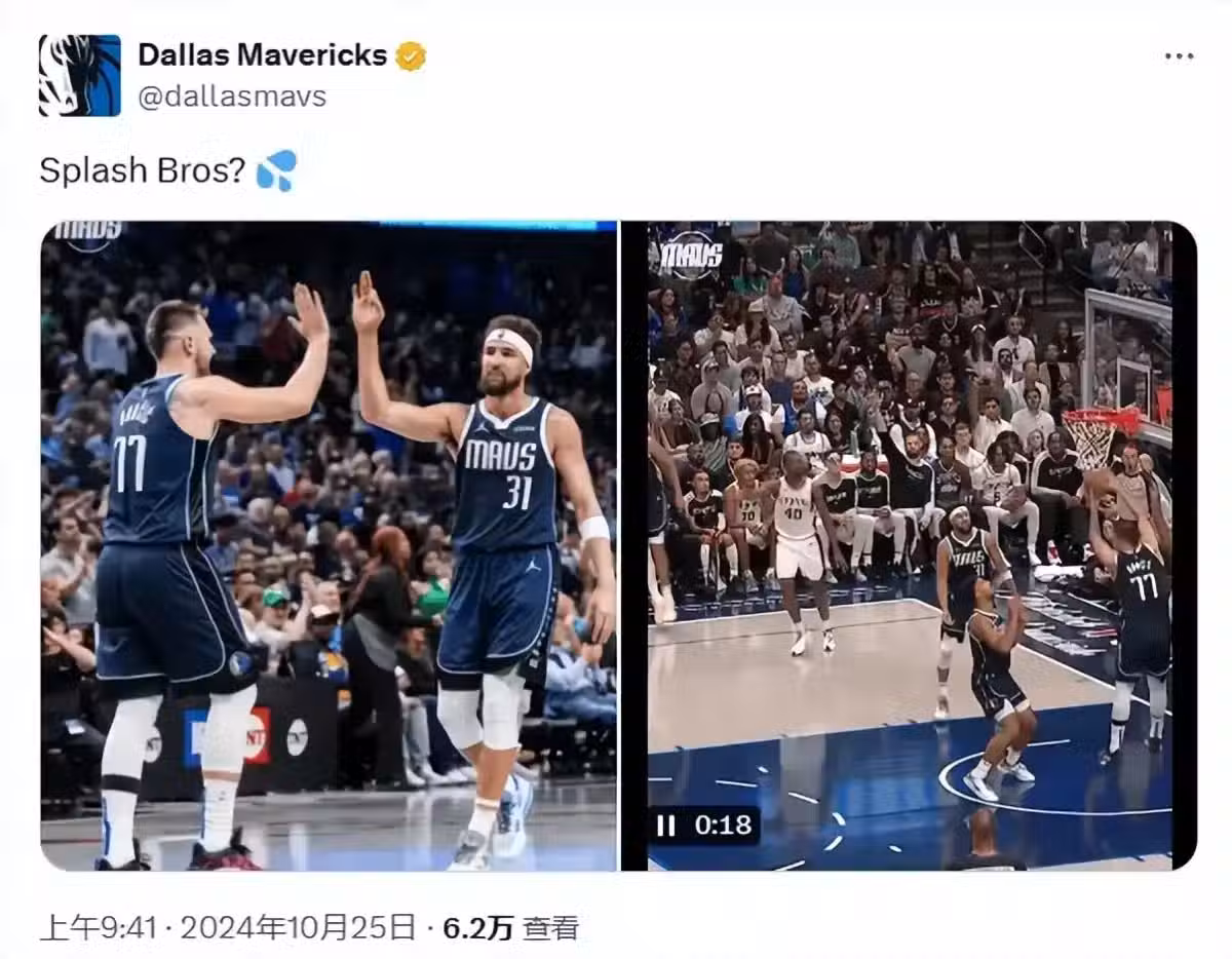 在今天賽後獨行俠官方曬出了湯普森和東契奇的合照,並視為新版的水花兄弟。其實湯普森一直都很適合持球大核,因為他不需要球權,就需要出手權。獨行俠要做的就是如何去掩蓋湯普森的防守缺陷。他現在爆發力不如巔峰時期,橫移嚴重不足,就內線頂防還行。所以勇士和獨行俠都採取了一個策略,就是分衛他打不了去打小前鋒吧。