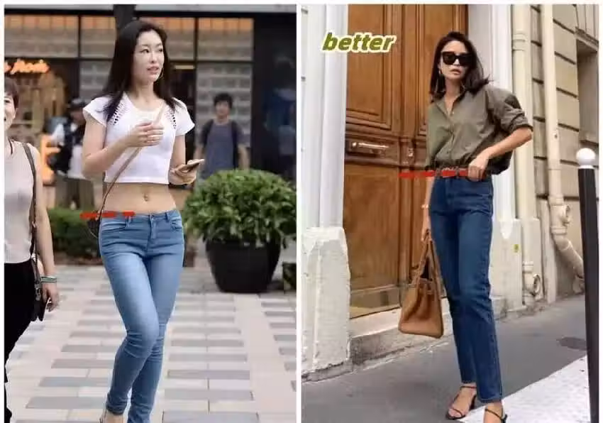 開頭已經強調過低腰褲是最好不要買的廉價單品,特別是小個子和比例不要的女性,高腰牛仔褲才是幫助你塑造比例的優秀單品。