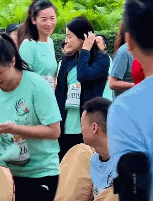 前跳水皇后郭晶晶也參與本次領跑活動,因為她是屬於元老跟陳夢,劉詩雯這些小輩都不怎麼熟悉。她站在那裡沒人搭訕有點面露尷尬。好在後來李小鵬主動與她交流緩解了尷尬的氛圍。