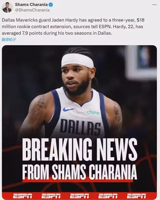 談到新賽季的目標,哈迪說道:「我主要專注於幫獨行俠拿到總冠軍,另一個目標就是我要贏得最佳第六人的獎項。」截至教主發稿,哈迪本賽季打了一場常規賽,替補出場20分鐘,6投3中拿到11分1籃板2助攻1蓋帽2失誤。