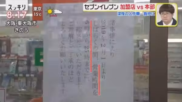 」,且還跟店長說如果不恢復營業時間,那他就必須付違約金,這件事引起多家7-ELEVEn加盟店不滿,紛紛聲援店長且與總部對立,各地門市的負責人及工會向總部提出異議說「門市負責人的工作時間以勞工標準來看長到可達被認定是過勞程度,呼籲總部認真思考是要珍惜員工生命,還是重視連鎖店形象,若是具有無論什麼情況下都必續持續24小時營業的非人道規定,那麼契約本身就應該被判定為無效」。
